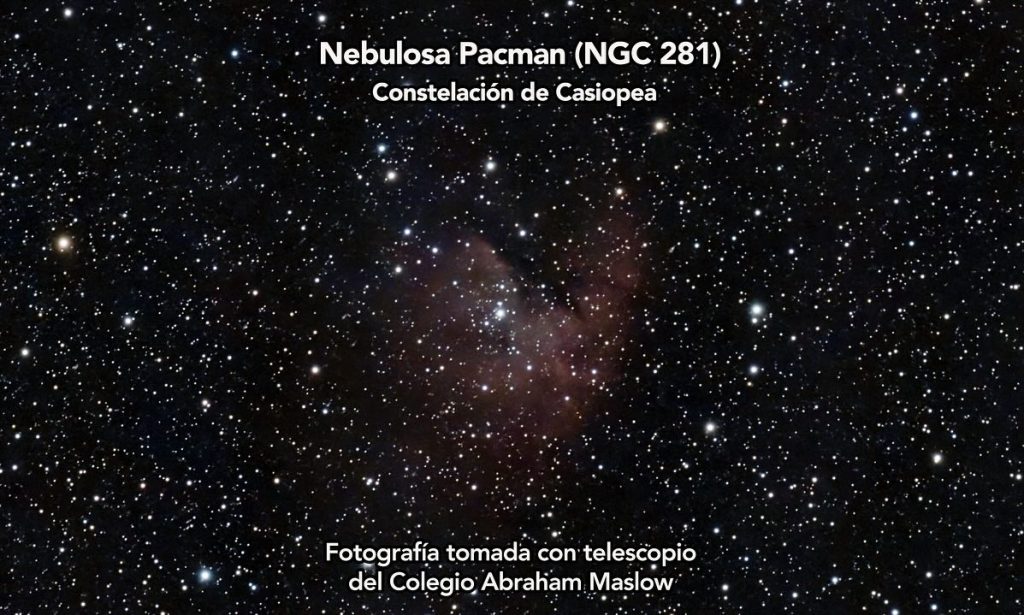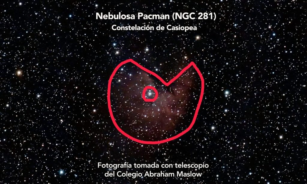 Compartimos esta maravillosa fotografía de esta nebulosa que se encuentra a 9200 años luz de la tierra en la constelación de Casiopea. Su nombre se debe a que, vista a través del telescopio parece tener la forma del famoso videojuego PACMAN. Esta nebulosa es una guardería estelar, un lugar donde nacen nuevas estrellas a partir del polvo y el gas cósmico. En la siguiente fotografía se puede observar la forma de PACMAN. para lograr verla fueron necesario tomar 250 fotografías unidas finalmente en una sola.
